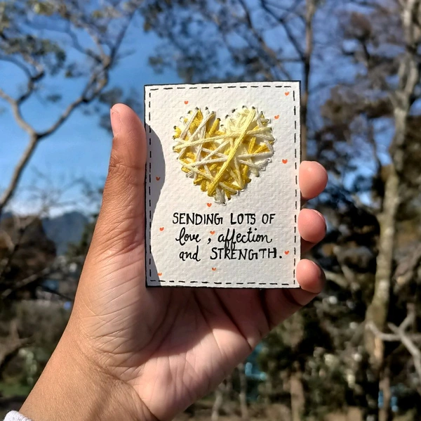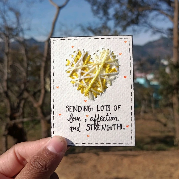 Sending Lots Of Love, Affection And Strength. Love Heart thread Card.