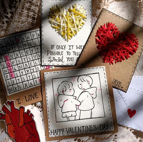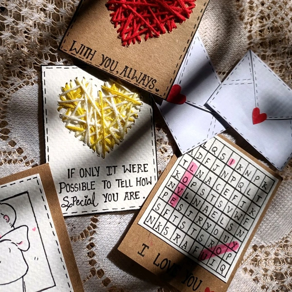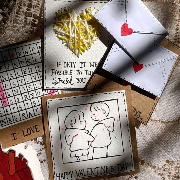 Valentine's Day Special Gift Hamper. 5 Cards With 2 Message Envelopes. Polaroid Photos Can Be Added.